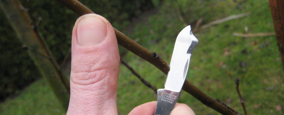 Die zweite Veredelungsart ist die Reiserveredelung. Sie wird vorrangig im Winter/Frühjahr angewendet. Benötigt wird ein Zweig mit drei bis fünf Augen (Knospen). Bei der Reiserveredelung gibt es die Kopulation, die Geißfußveredlung und das Pfropfen. Für alle Veredelungsverfahren benötigen Sie absolute Sauberkeit sowie scharfes und passendes Werkzeug (Veredelungsmesser/ Okulationsmesser) sowie Verschluss- und Verbindungsmaterial (Veredelungsbänder oder Schnellverschlüsse aus Kautschuk). Wenn alle Materialien vorhanden sind, kann es mit etwas Geschick und Ruhe an die Arbeit gehen.